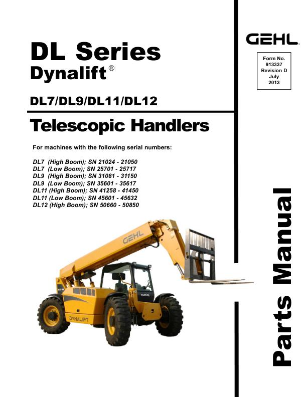 Gehl DL7 DL9 DL11 DL12 Parts Manual 913337D
