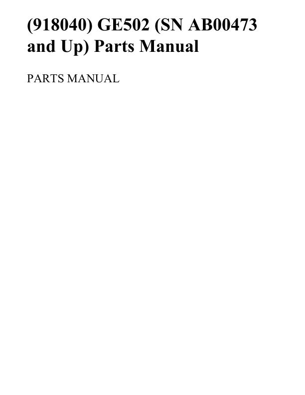 Gehl GE502 Parts Manual 918040_2023