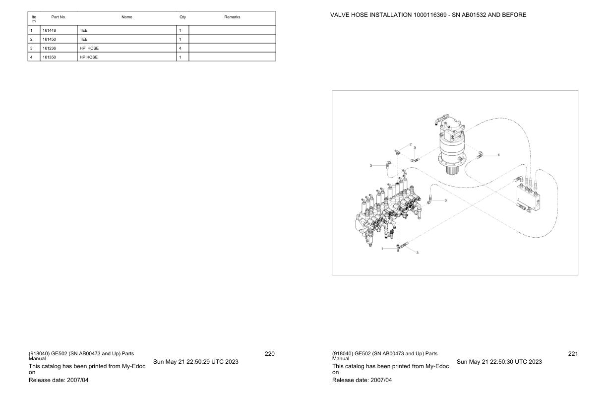 TRAVEL MOTOR HOSE INSTALLATION 1000116366