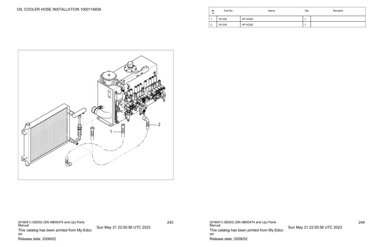 TRAVEL MOTOR HOSE INSTALLATION 1000116839