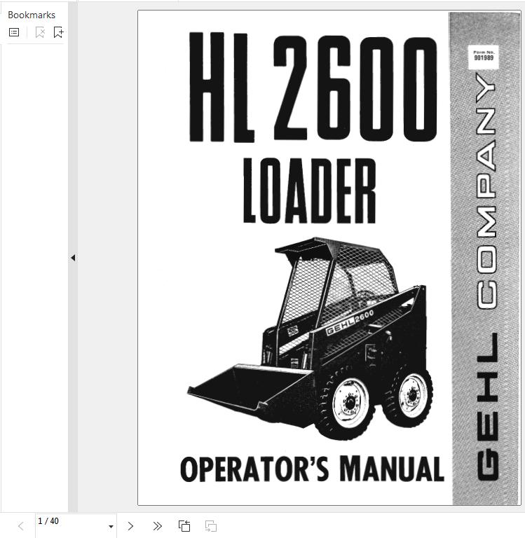 GEHL HL2600 Operators Manual 901989ASize: 10.4 MBMachine: Skid-Steer LoadersMachine Model: HL2600Page: 40 PagesForm Number: 901989A