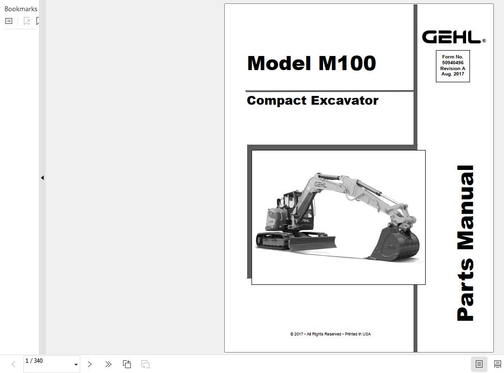 GEHL M100 Parts Manual 50940496ASize: 23.5 MBMachine: ExcavatorMachine Model: M100Publication Date: 2017Page: 340 PagesForm Number: 50940496A