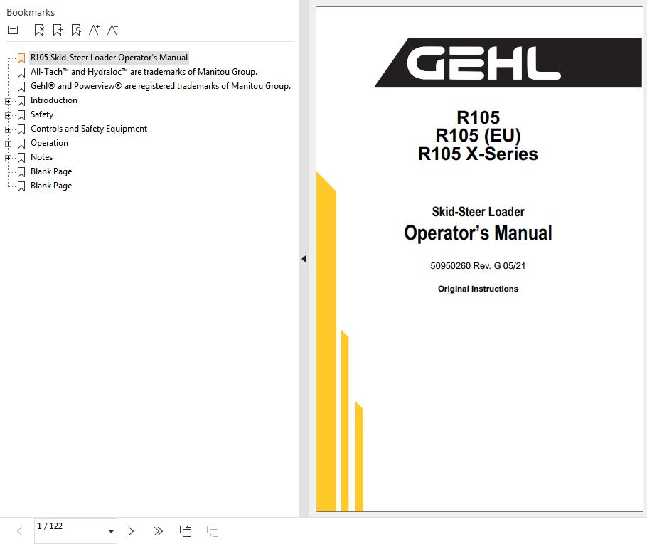 GEHL R105 105EU R105 X-Series Operator's Manual 50950260G