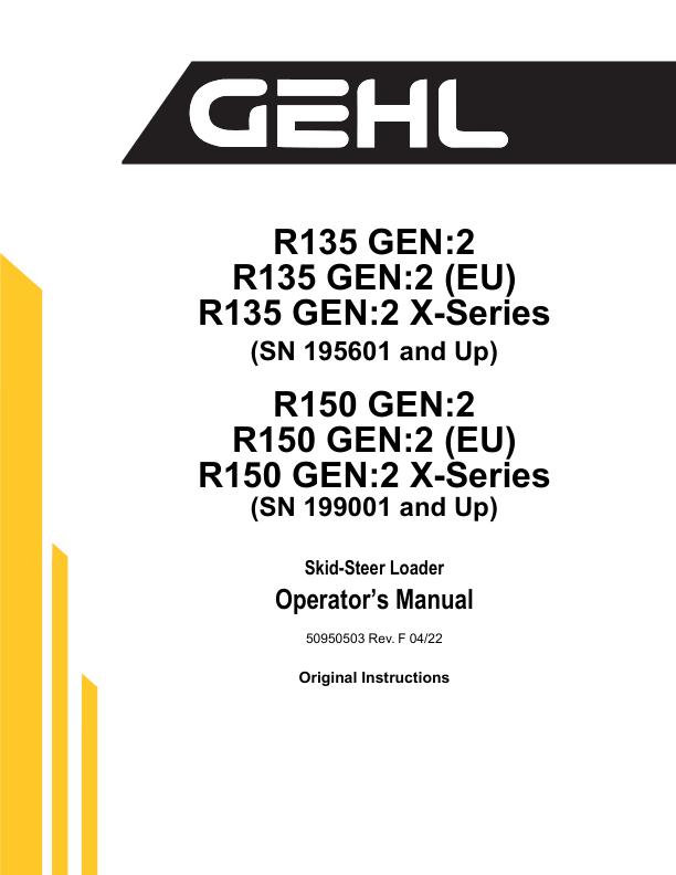 Gehl R135 GEN2 R150 GEN2 Operators Manual 50950503F