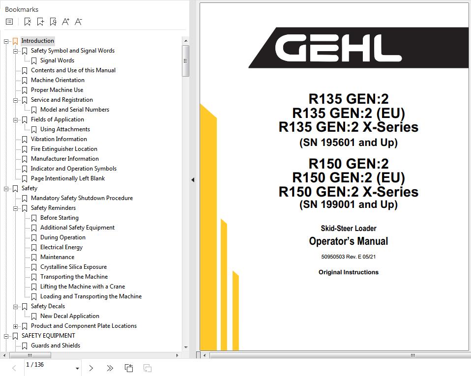 GEHL R135 Gen2 to R150 Gen2 X-Series Operator's Manual 50950503E