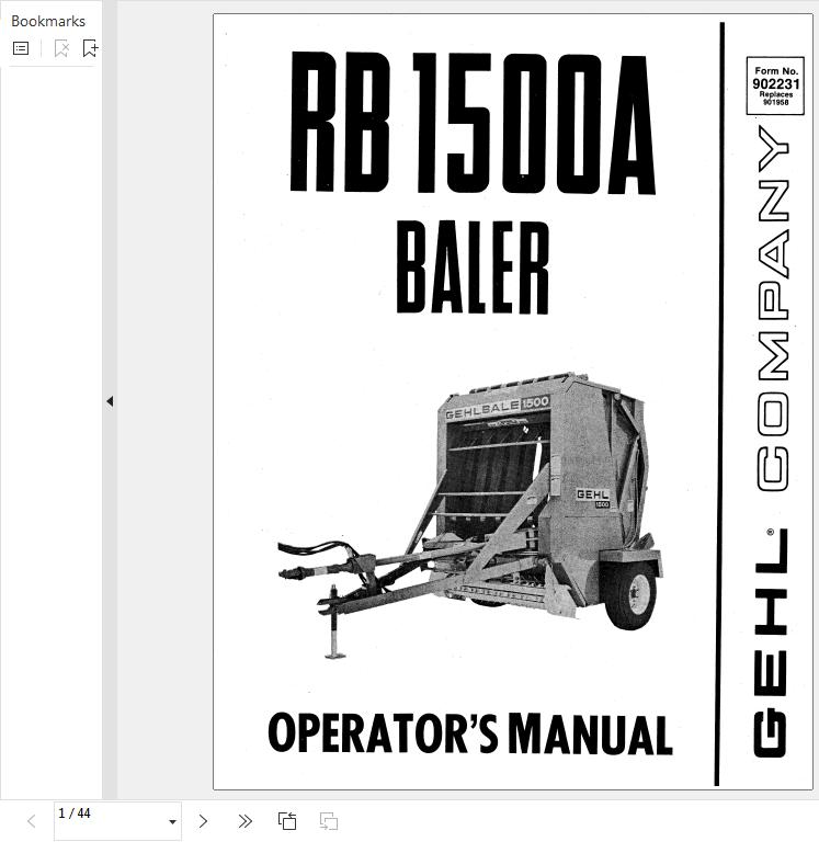 GEHL RB1500A Operators Manual 902231ASize: 12 MBMachine: BalerMachine Model: RB1500APage: 44 PagesForm Number: 902231A