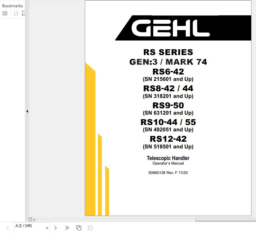 GEHL RS Series Gen3 Mark74 Operator's Manual 50960138F