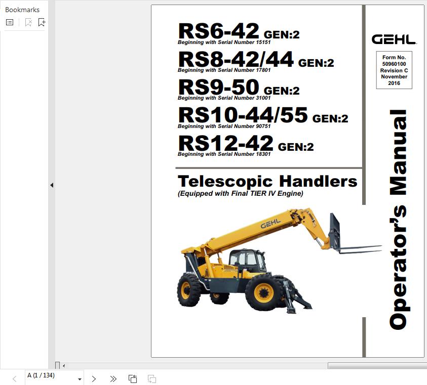 GEHL RS6-42 GEN2 to RS12-42 GEN2 Operators Manual 50960100C