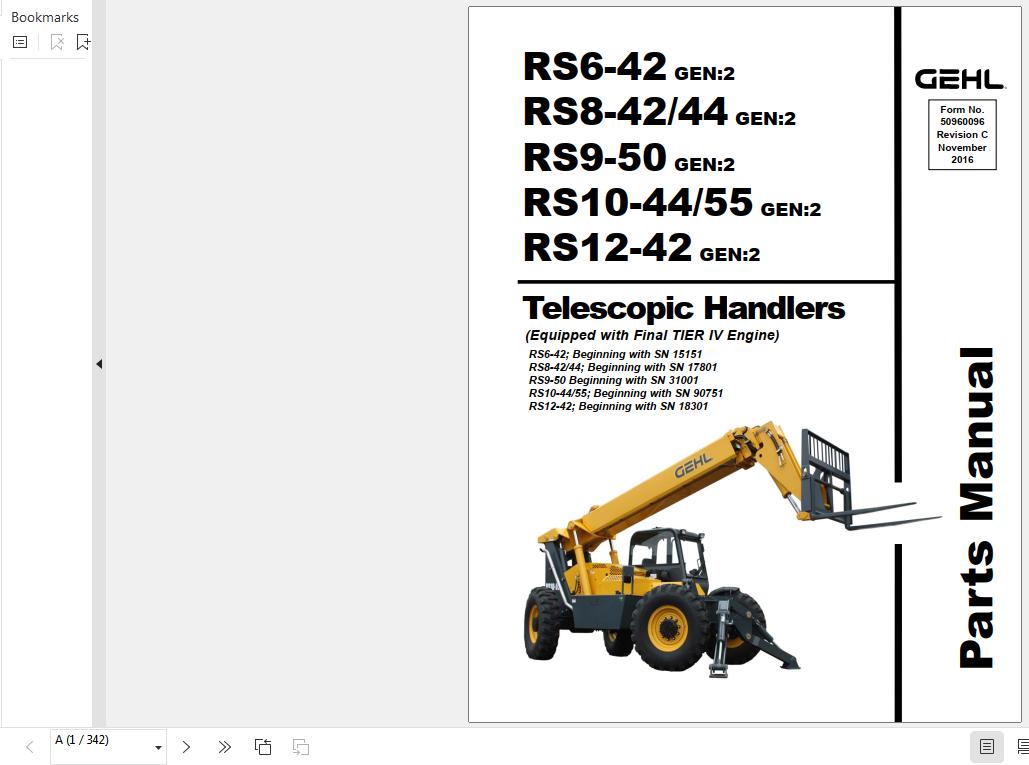 GEHL RS6-42 Gen2 to RS12-42 GEN2 Parts Manual 50960096C
