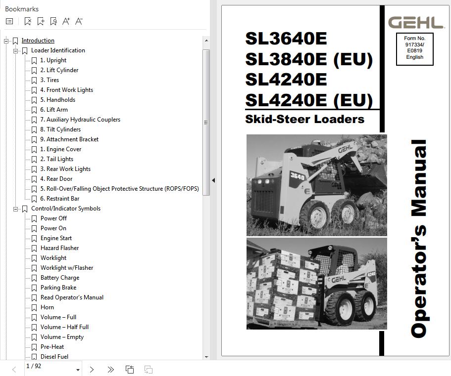GEHL SL3640E SL3840EEU SL4240E SL4240EEU Operator's Manual 917334E
