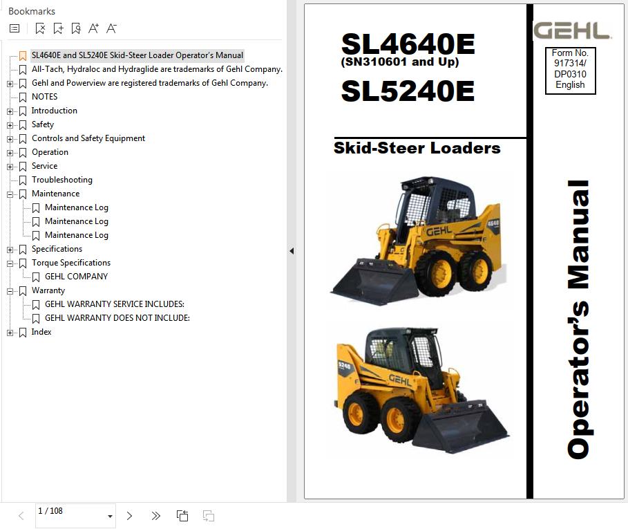 GEHL SL4640E SL5240E Operators Manual 917314D