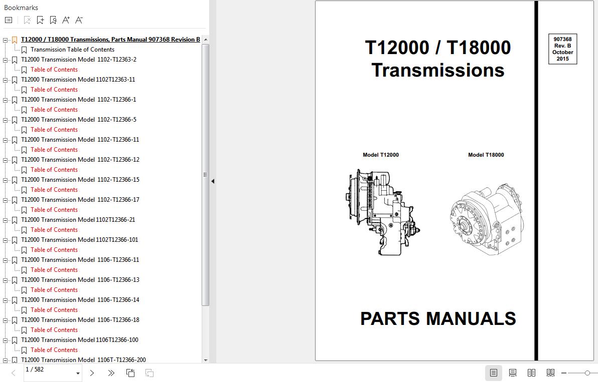 GEHL T12000 T18000 Transmission Parts Manual 907368B