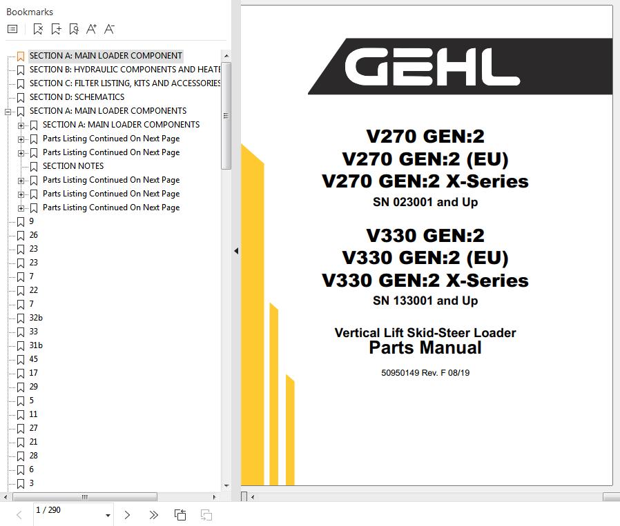 GEHL V270 Gen2 V330 Gen2 Parts Manual 50950149F