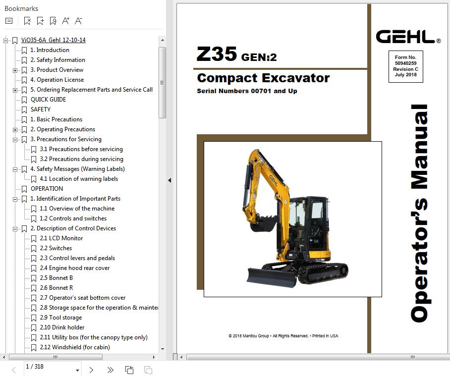 GEHL Z35 Gen2 Operator's Manual 50940259C