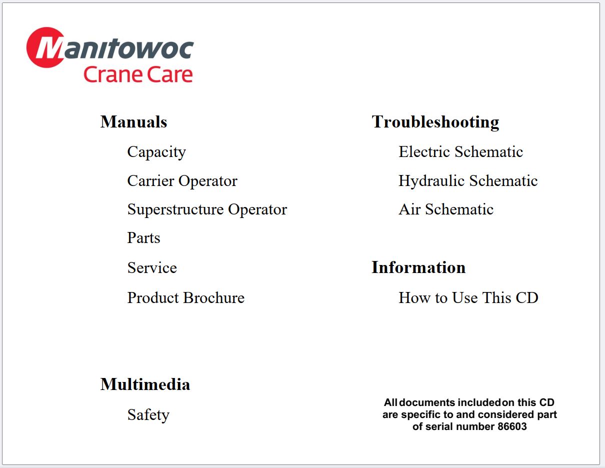 Document: Load Charts, Parts Catalog, Service Manual, Schematics