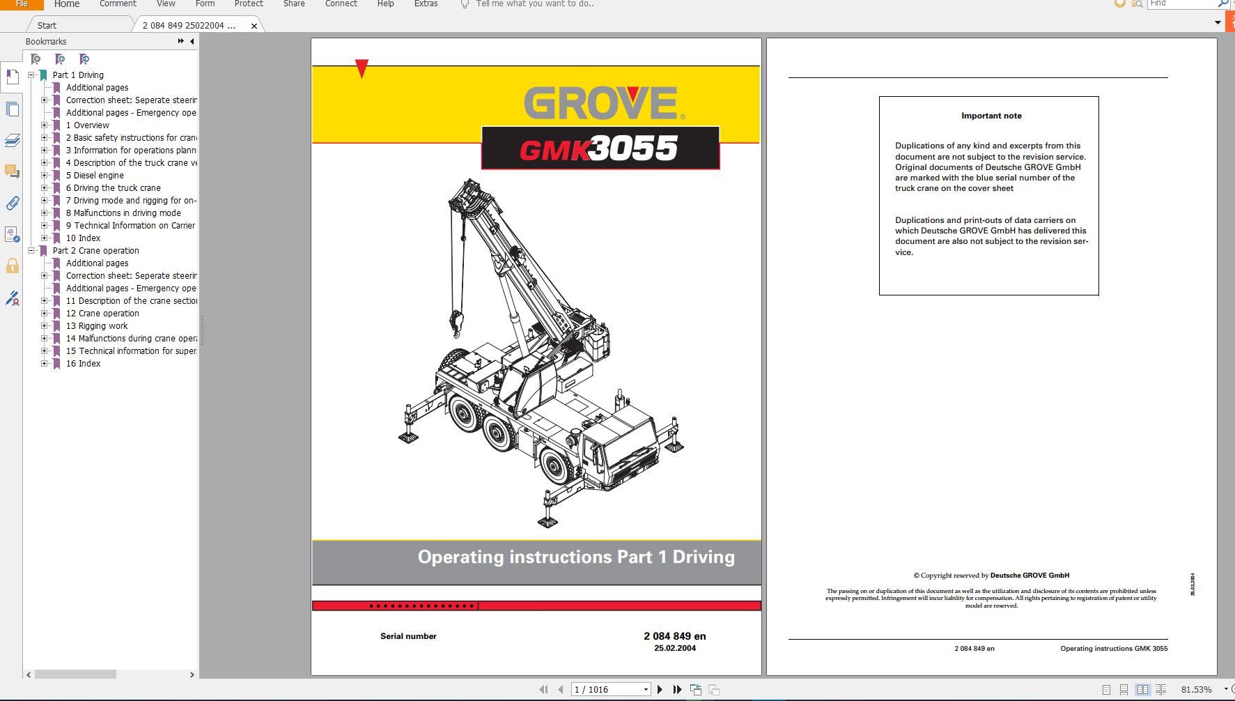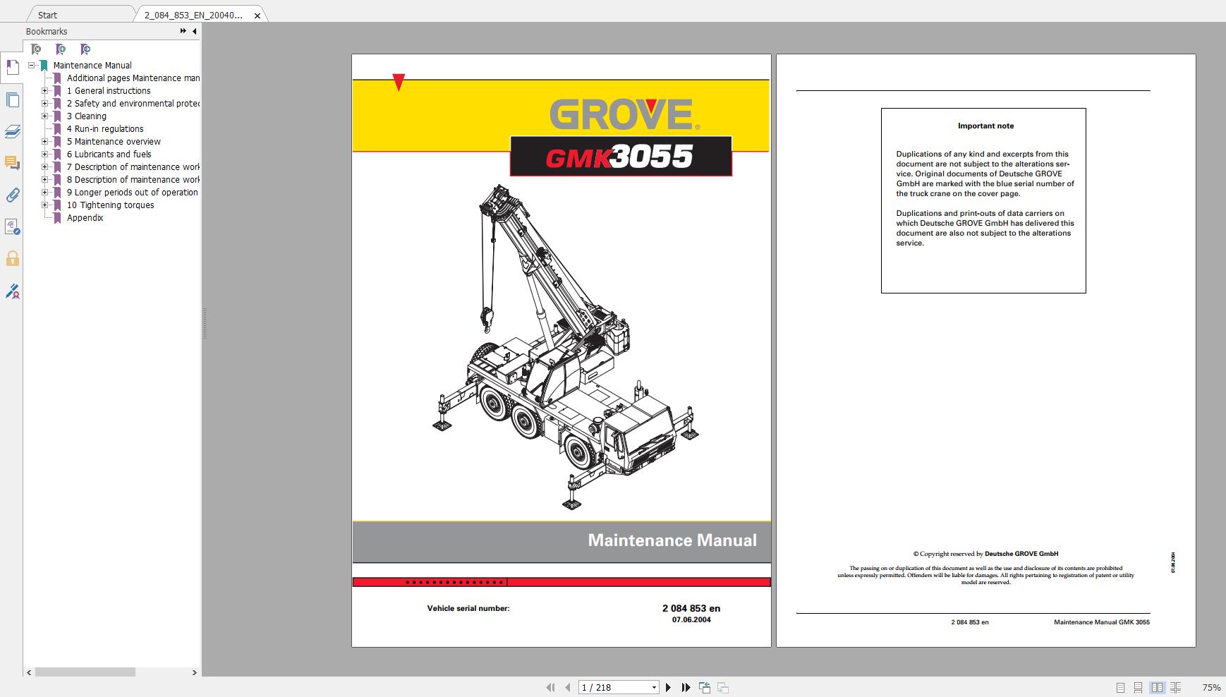 Grove GMK3055 Operating Instruction and Maintenance Manual