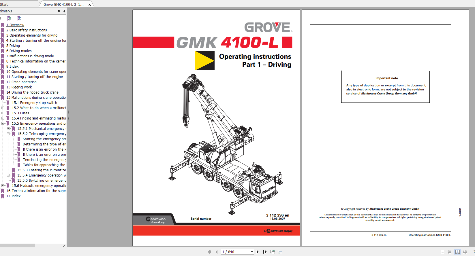 Grove GMK4100-L 3 112 396 EN Operating Instructions Part 1 - Driving