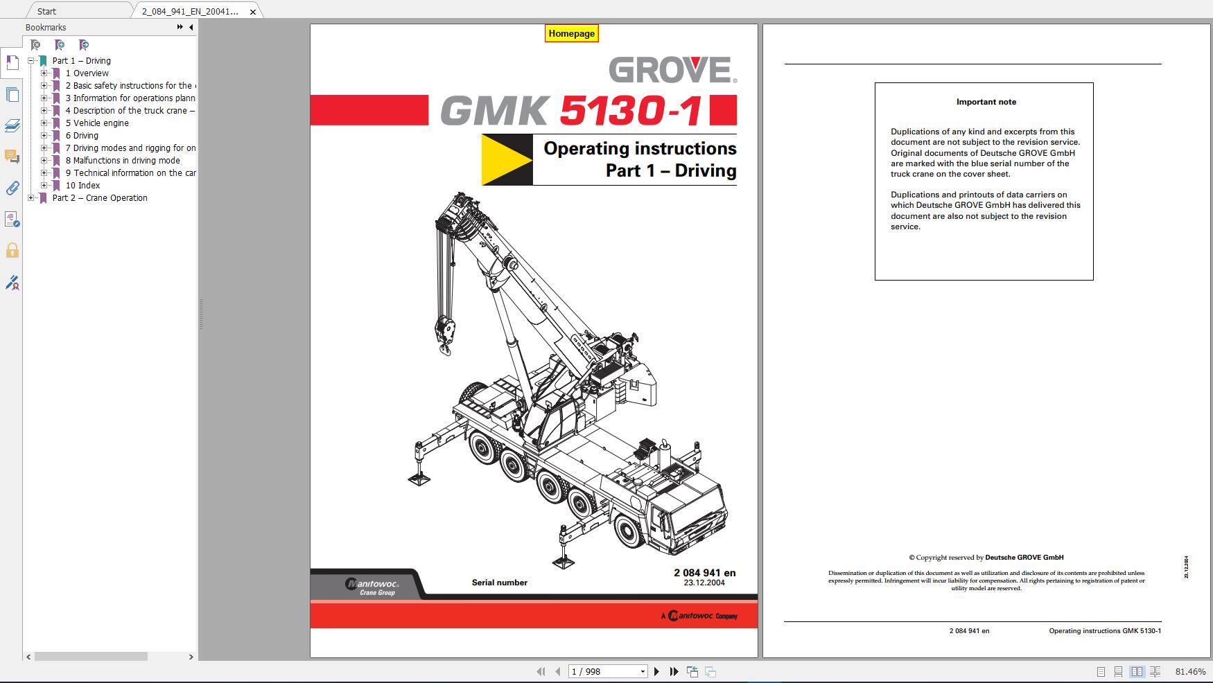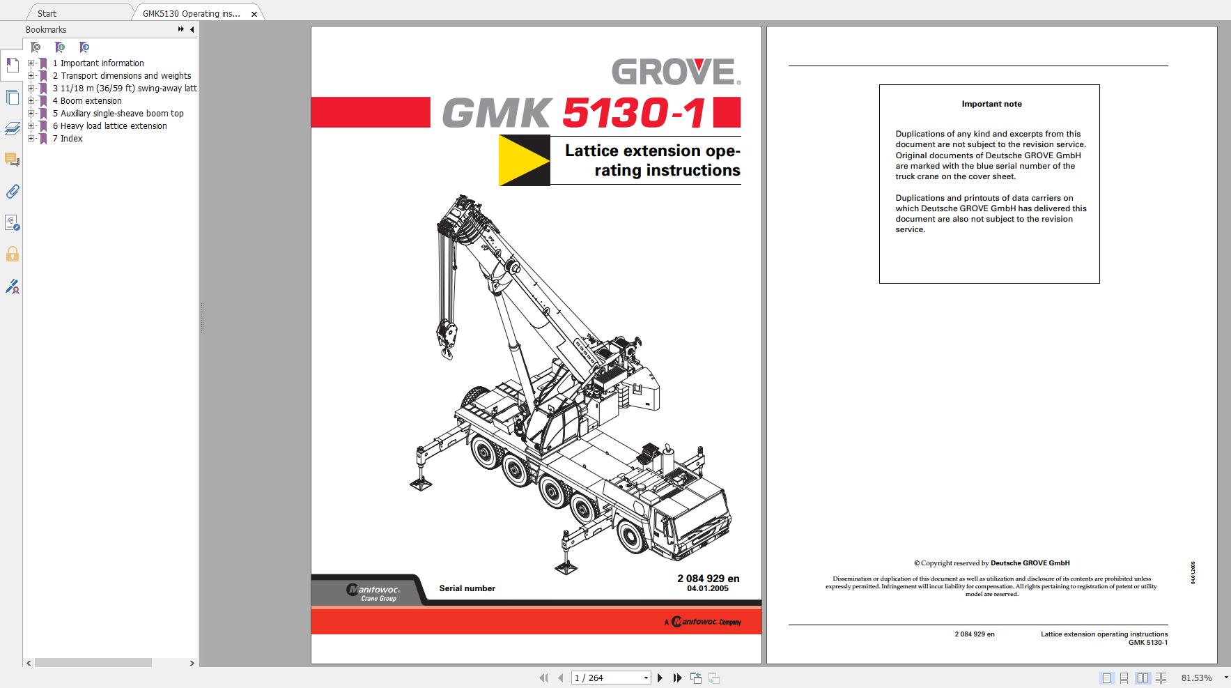 Grove GMK5130-1 Operating Instruction and Maintenance Manual