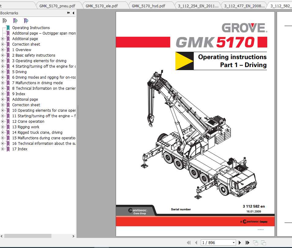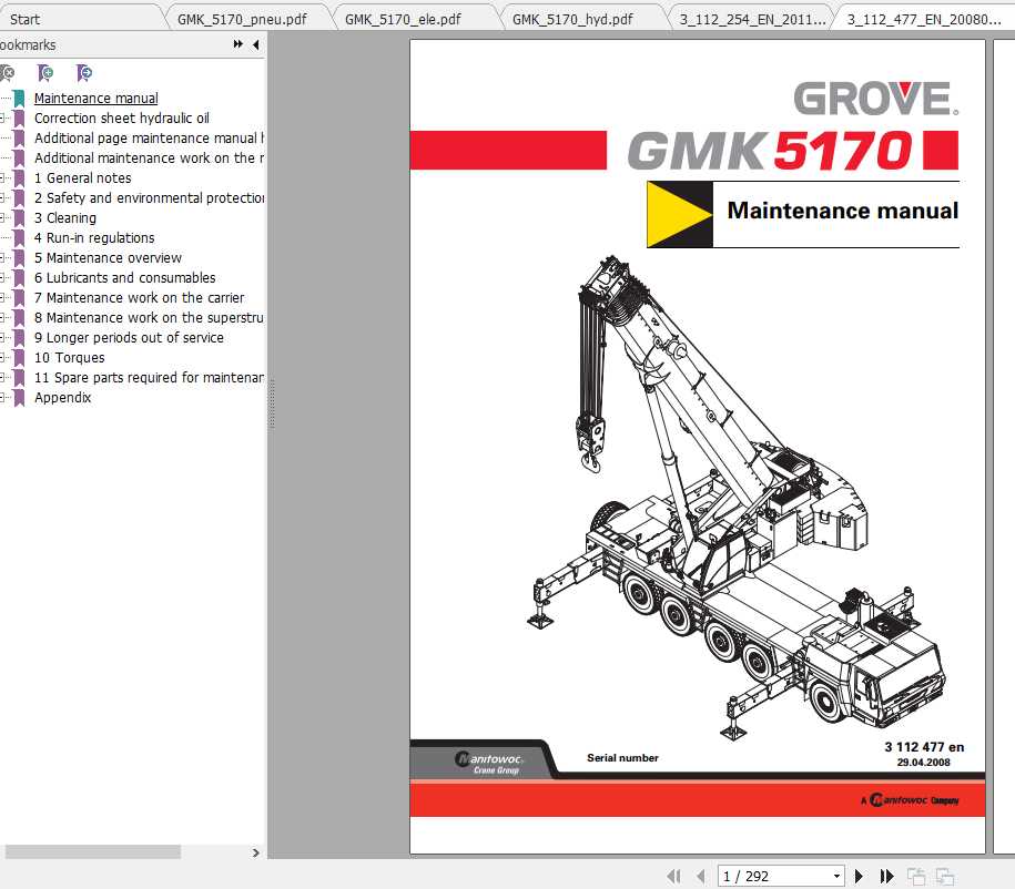 Grove GMK5170 Service and Parts Manual Operators Manual Schematic