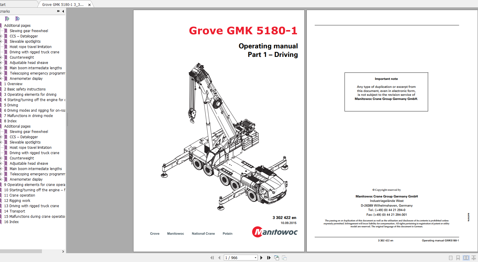 Grove GMK5180-1 3 302 422 EN Operating Manual PaRT1 - Driving