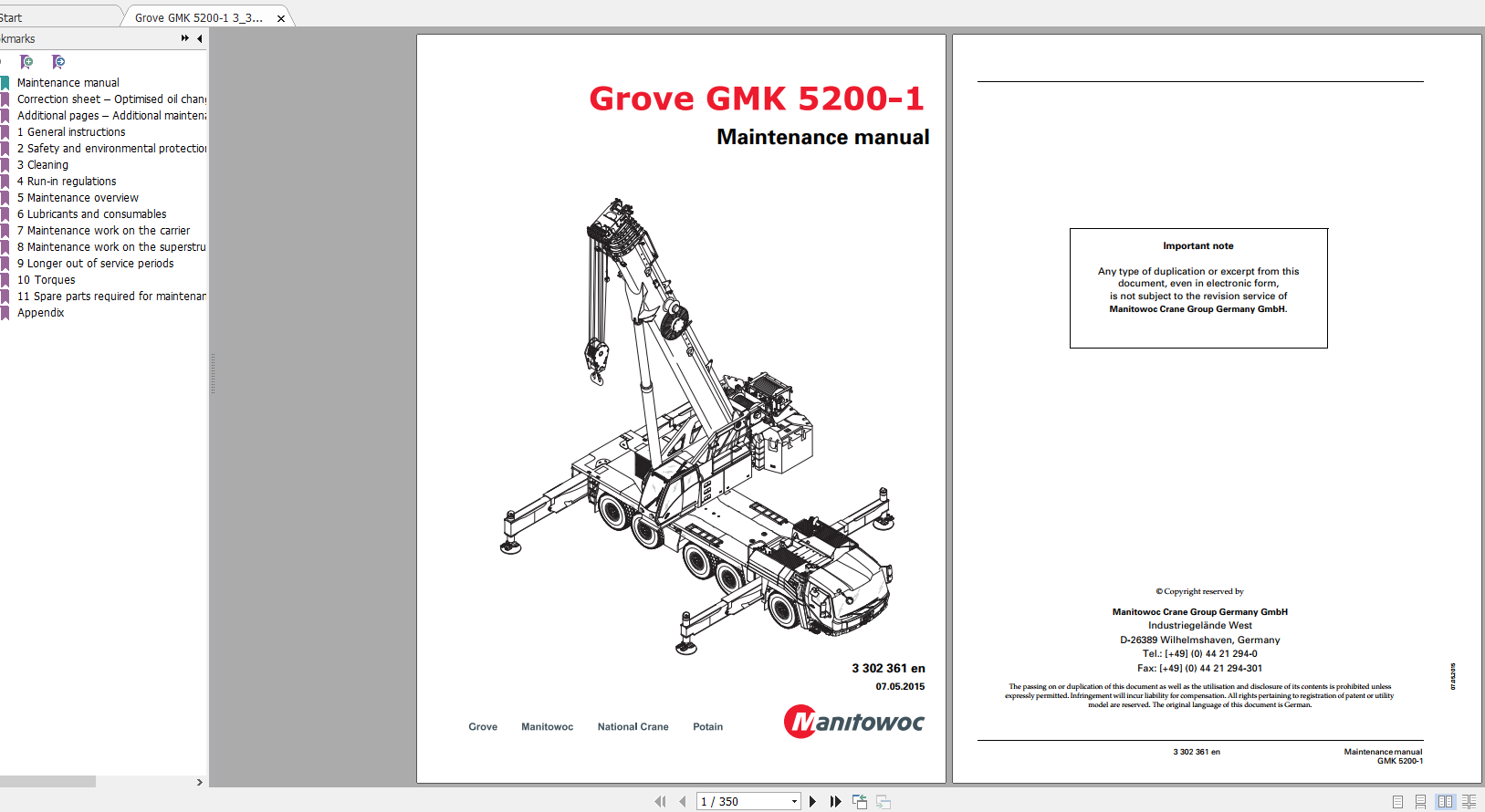 Grove GMK5200-1 3 302 361 EN Maintenance Manual