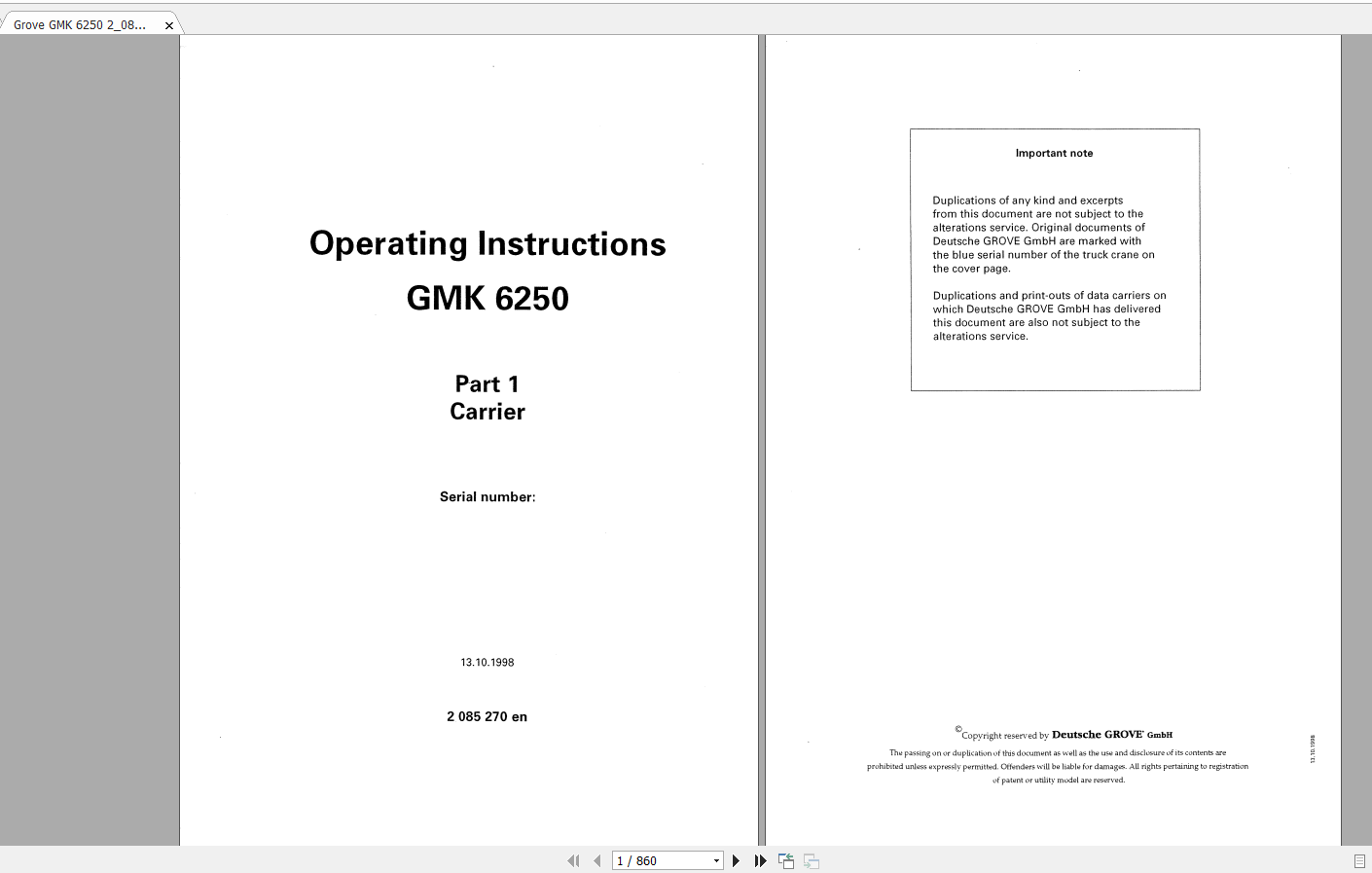 Grove GMK6250 2 085 270 EN Operating Instructions Part 1Carriet