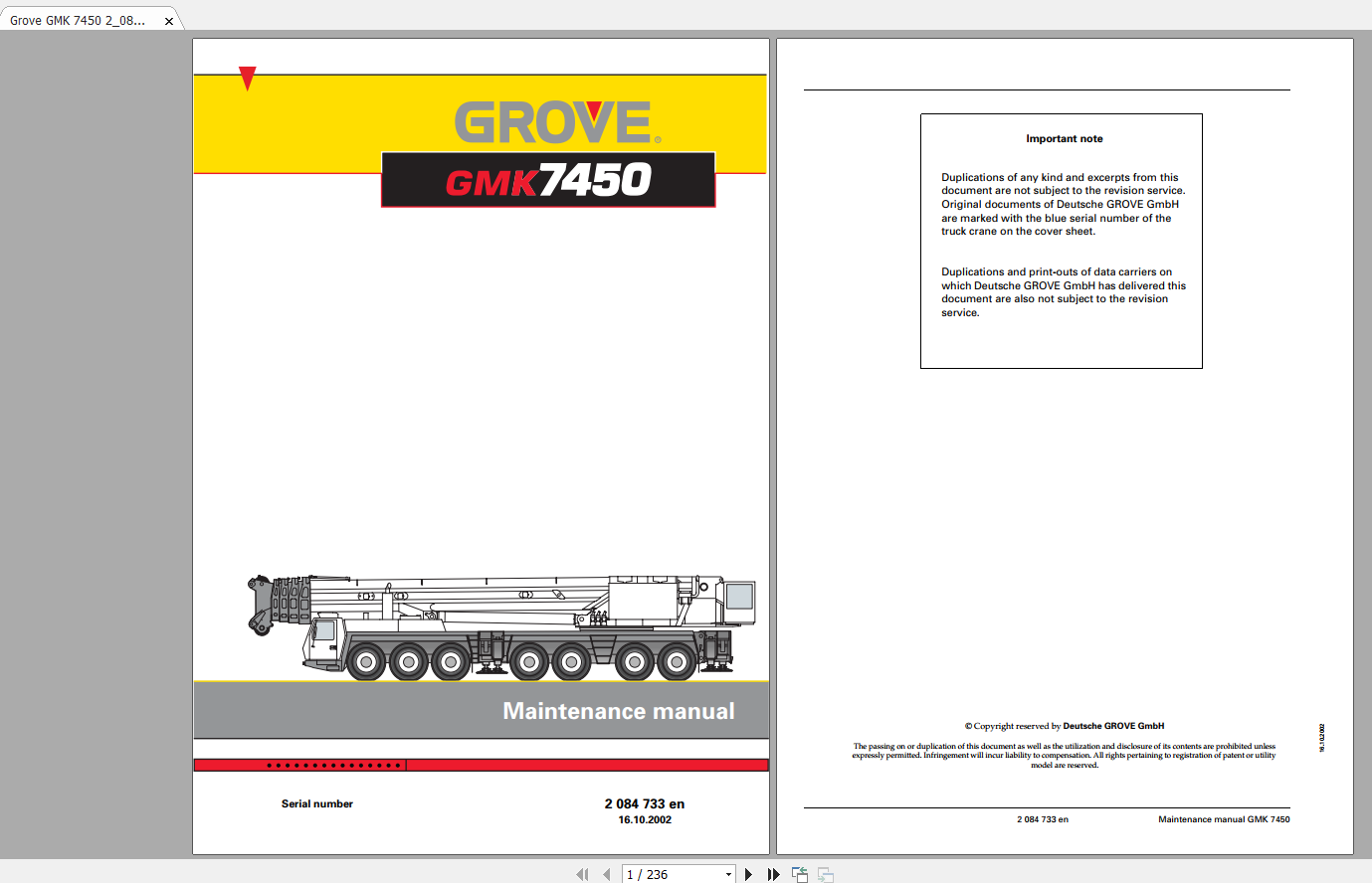 Grove GMK7450 2 084 733 EN Maintenance Manual