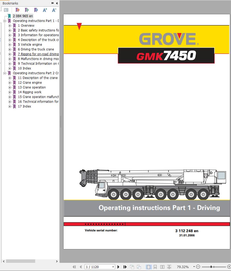 Grove GMK7450 Parts Catalog Operation Manual
