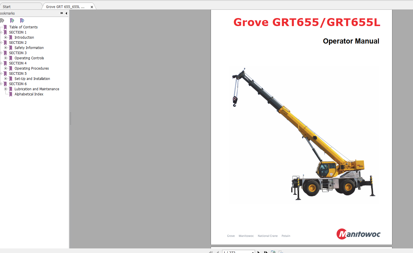 Grove GRT655 GRT655L Operators Manual and Parts List