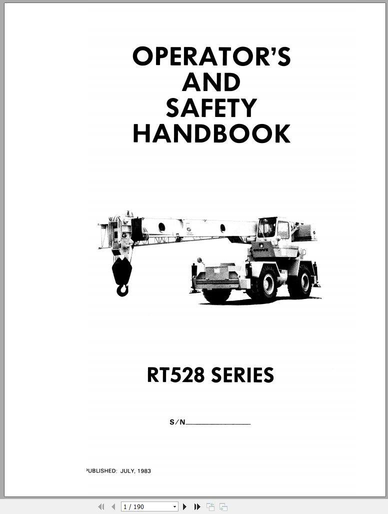 Grove RT528 SERIES REV 7-83 Operators and Safety Handbook 1983
