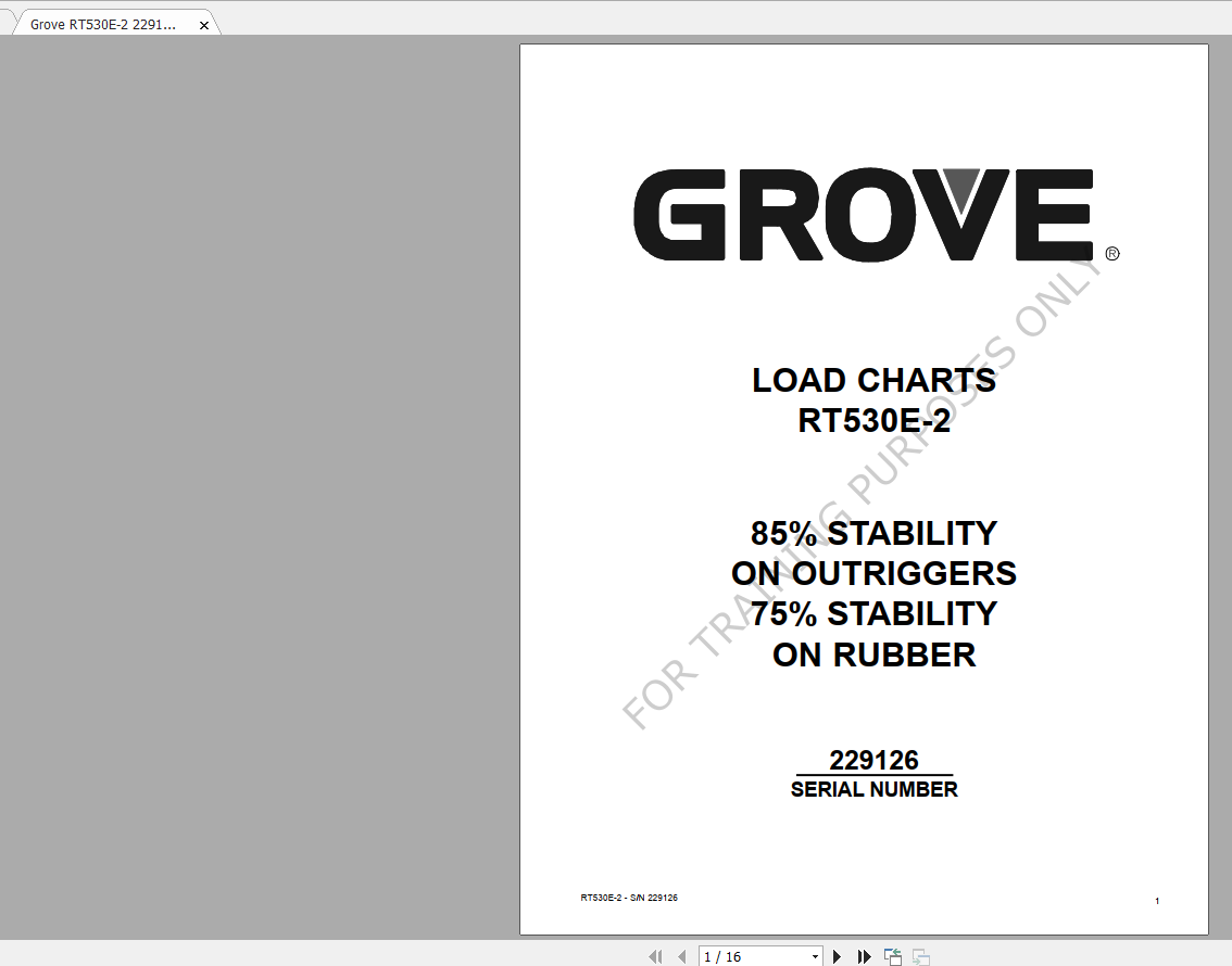 Grove RT530E-2 T4F Control 583-00 Operators Manual