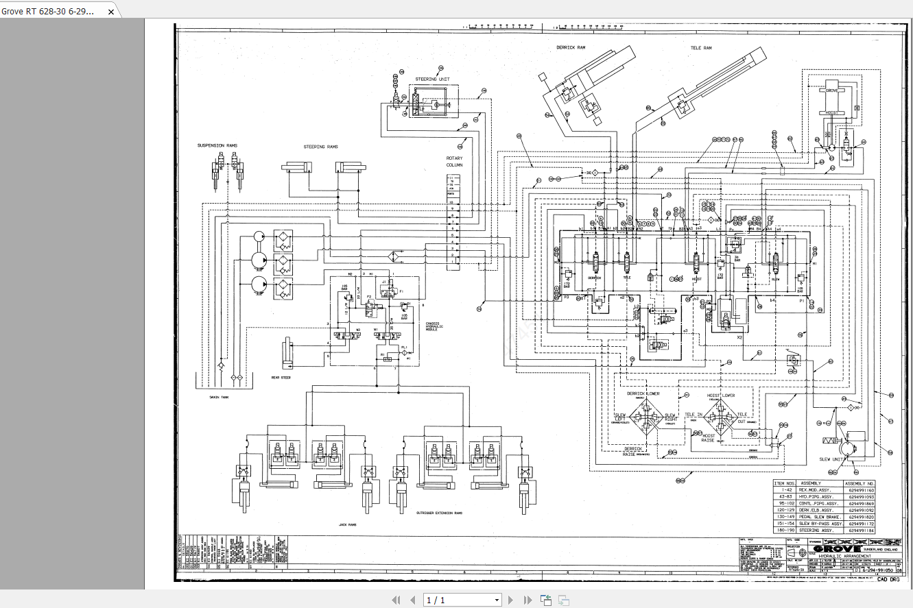 Grove RT628-30 6-294-991050 Rev-08 Hydraulic Arrangement