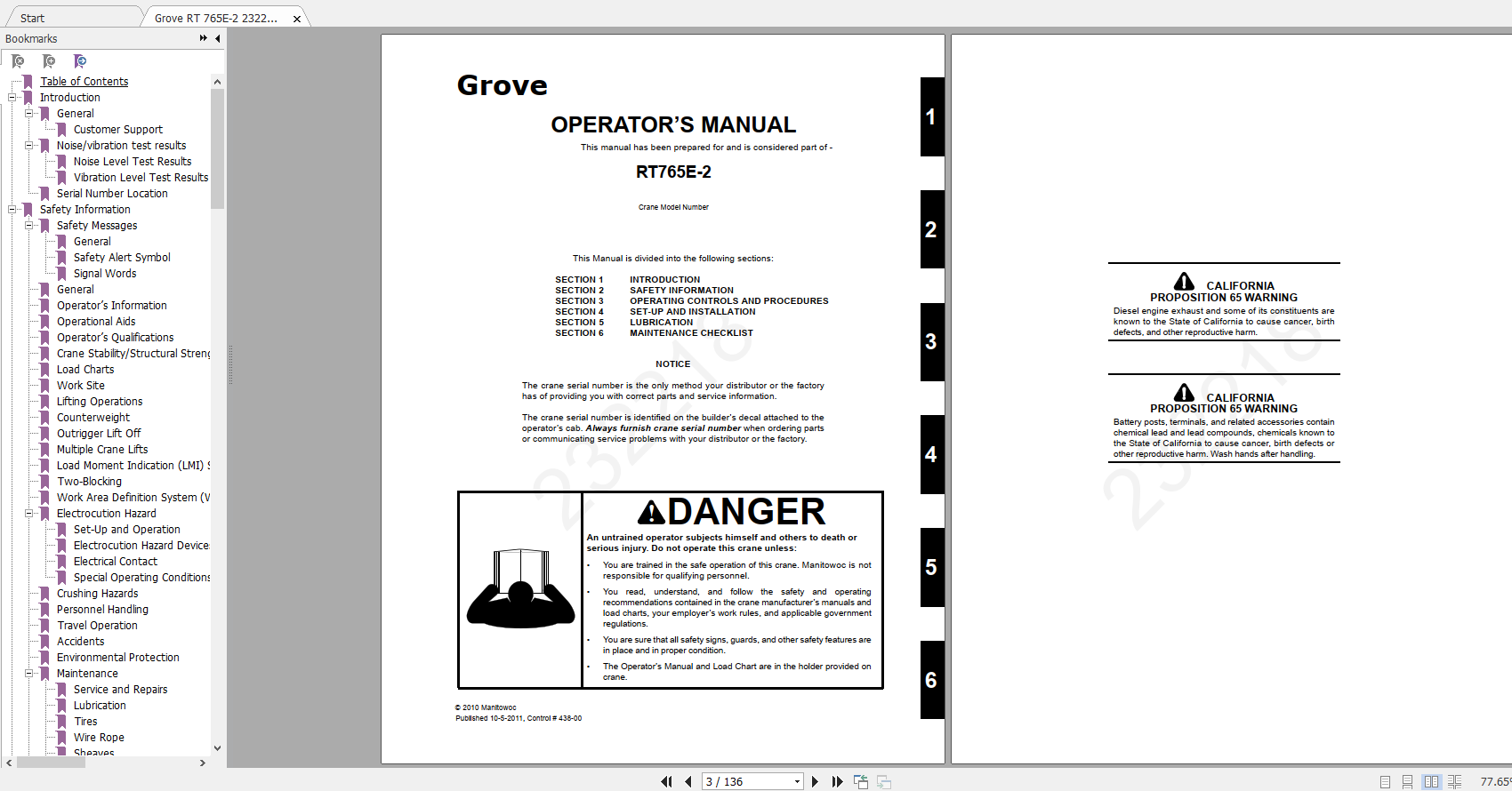 Grove RT765E-2 CTRL 422-01 Service Maintenance Manual