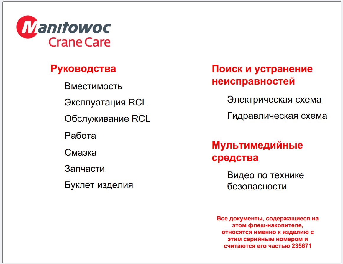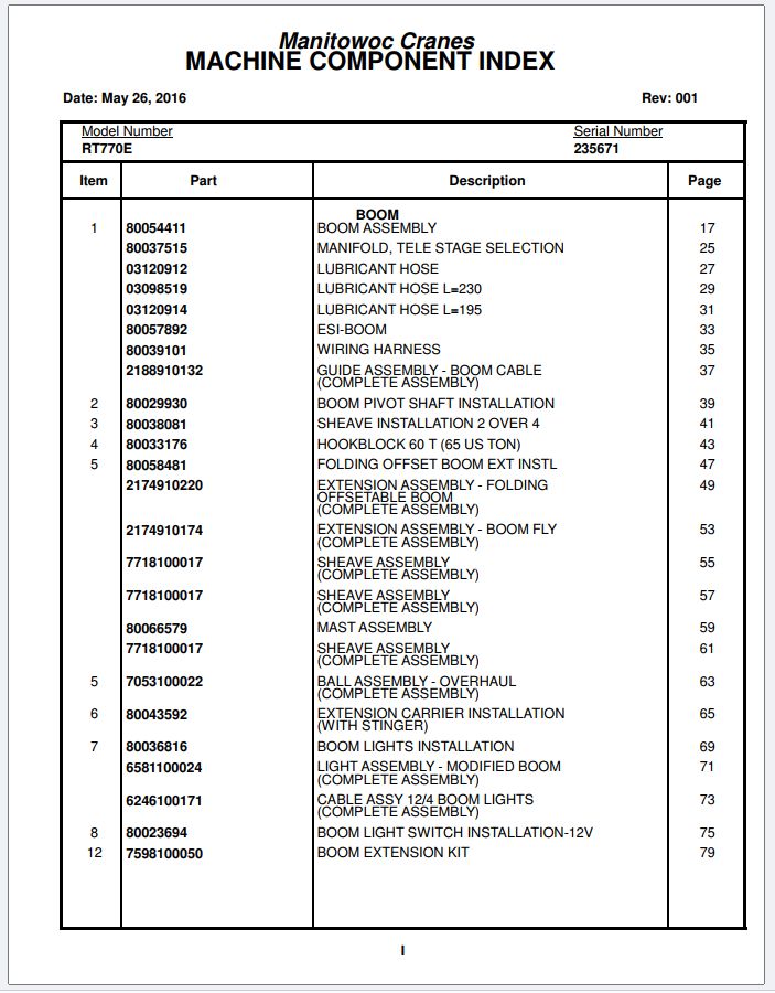 Document: Load Charts, Operator Manual, Maintenance Manual, Parts Catalog