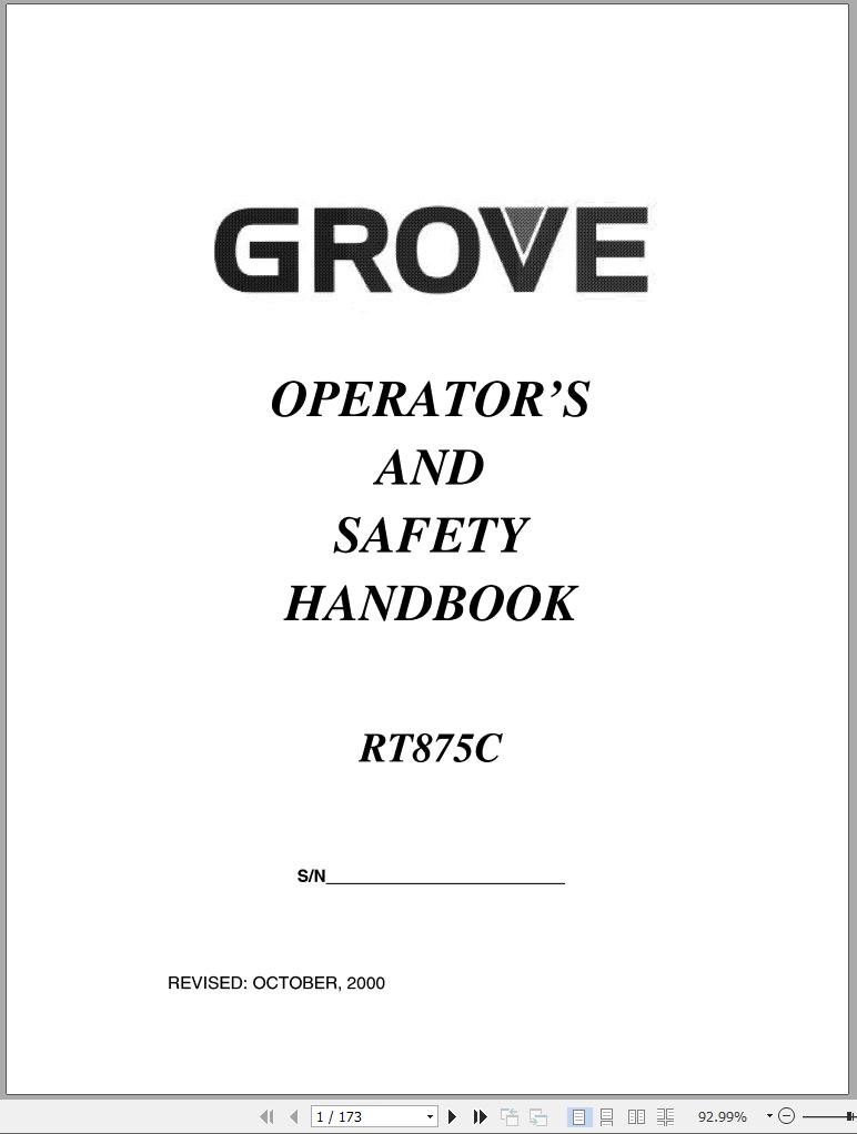 Grove RT875C OCT 2000 Operators and Safety Handbook (173 Pages)