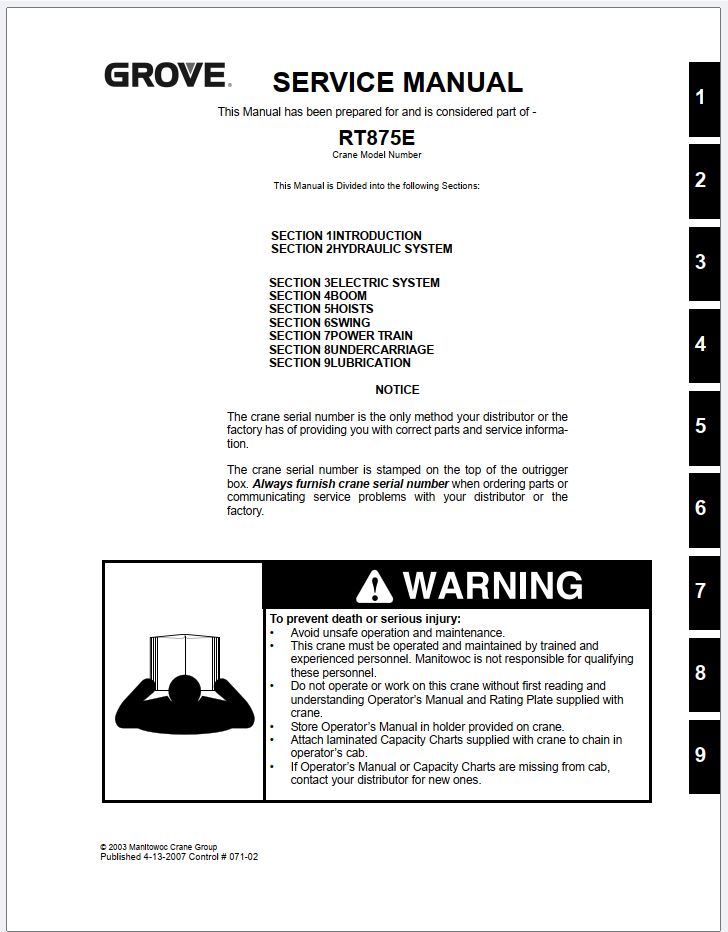 Grove RT875E Service Manuals and Schematics PDF