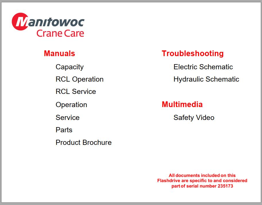 Grove RT880E 235173 Service Operators Parts Manual and Schematic