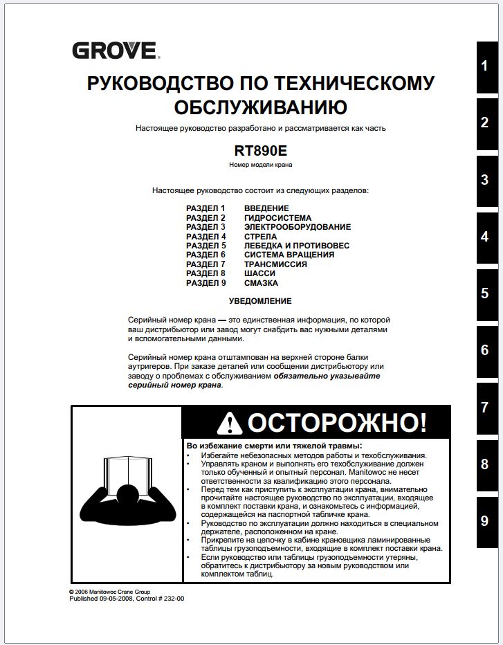 Grove RT890 Service Manuals and Schematics PDF
