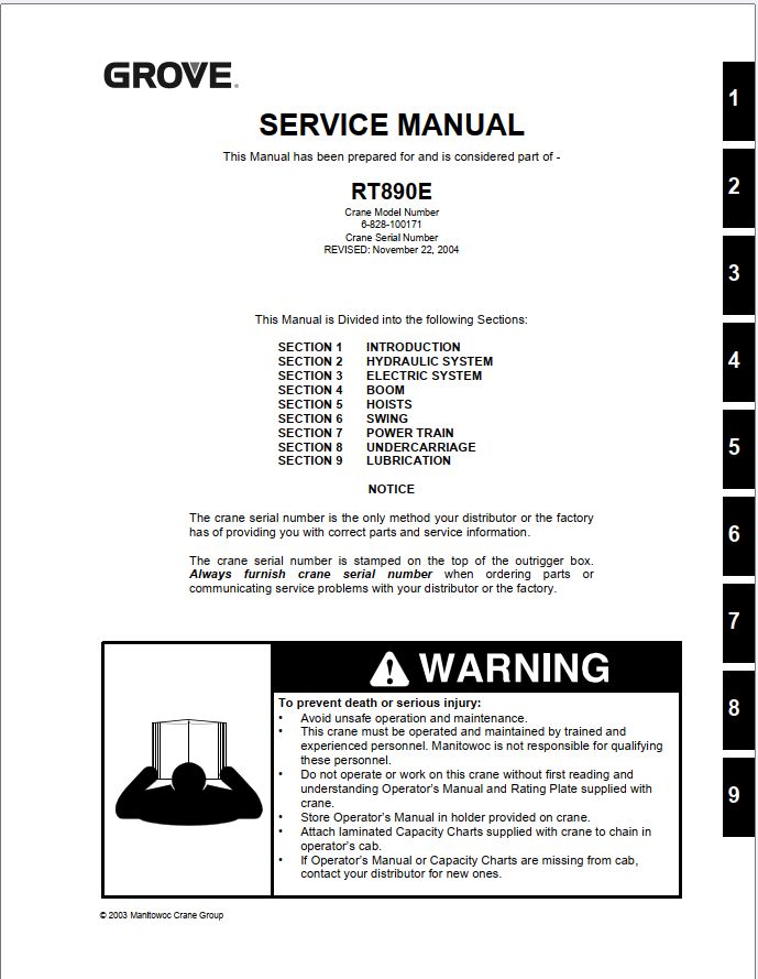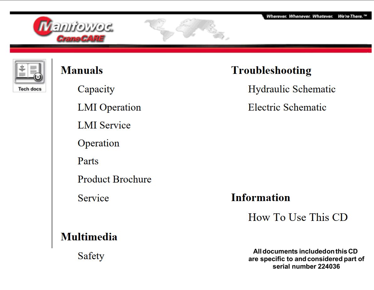 Document: Load Charts, Operator Manual, Parts Catalog, Service Manual, Schematics
