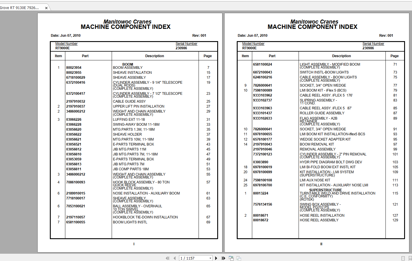 Grove RT9130E 7926100709 REV-001 2010 EN Parts Manual