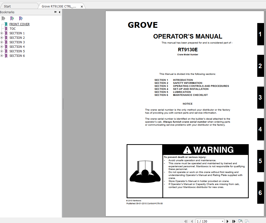 Grove RT9130E 7926100709 REV-001 2010 DE Parts Manual