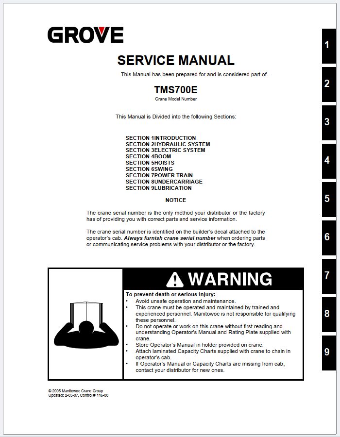 Document: Schematics, Operator Manual, Load Chart, Service Manual