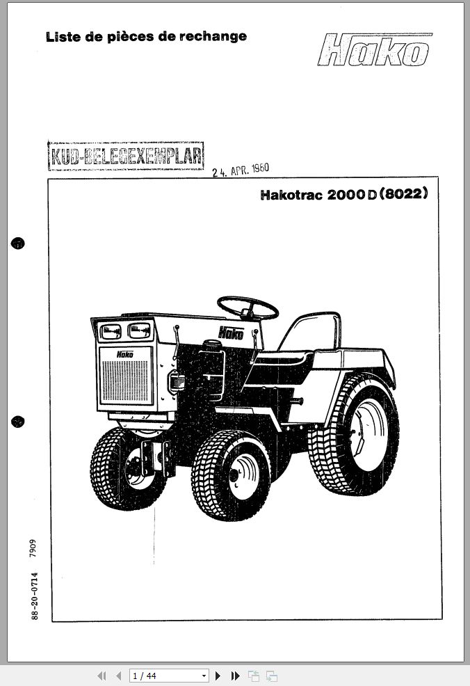 Hako 2000D Spare Parts List 88-20-0714/7909