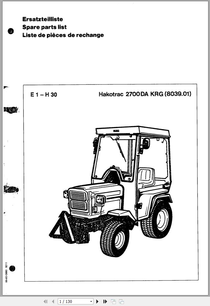 Hako 2700DA KRG Spare Parts List 88-60-0880/9211