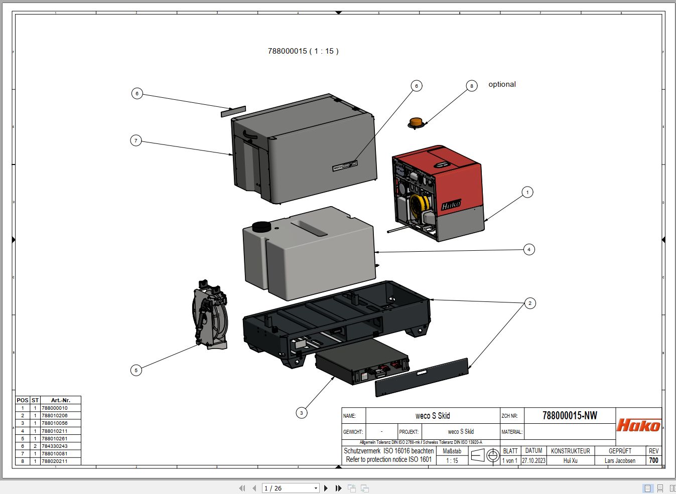 Hako Weco S350 Skid Spare Parts List 788000015-NW REV700