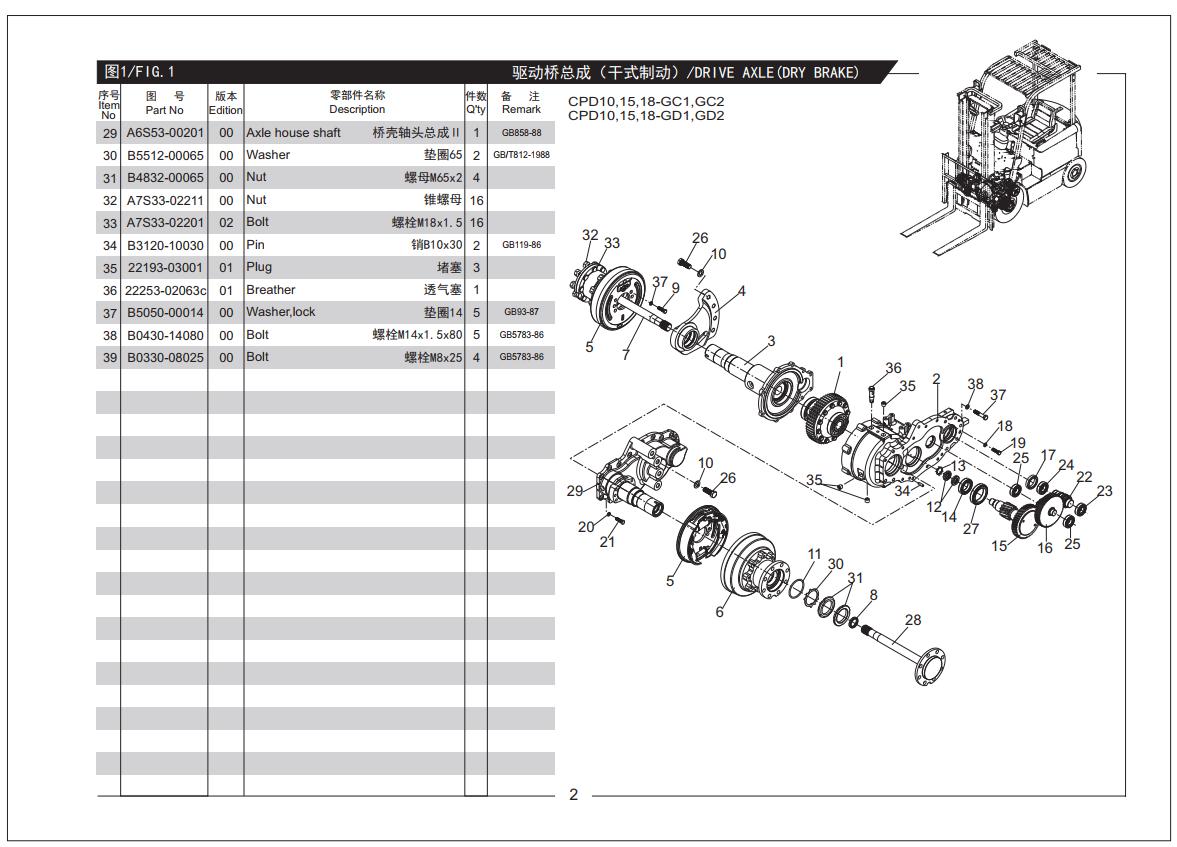 Heli Forklift G Series 3t 3.5t Parts Manual L361-1-2014 ZH EN (36 Pages)