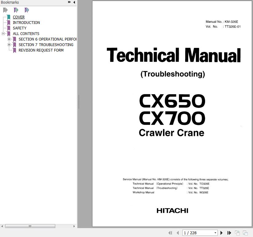 Hiatchi CX650 CX700 Technical Manual Troubleshooting KM-326E 228 Pages