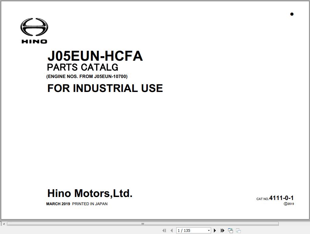 HINO J05EUN-HCFA Engine Parts Catalog 4111-0-1