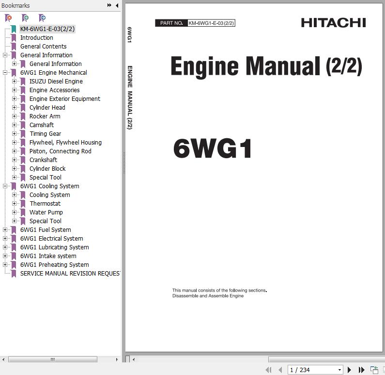 Hitachi Engine 6WG1 Engine Manual KM-6WG1-E-03(22) 234 Pages
