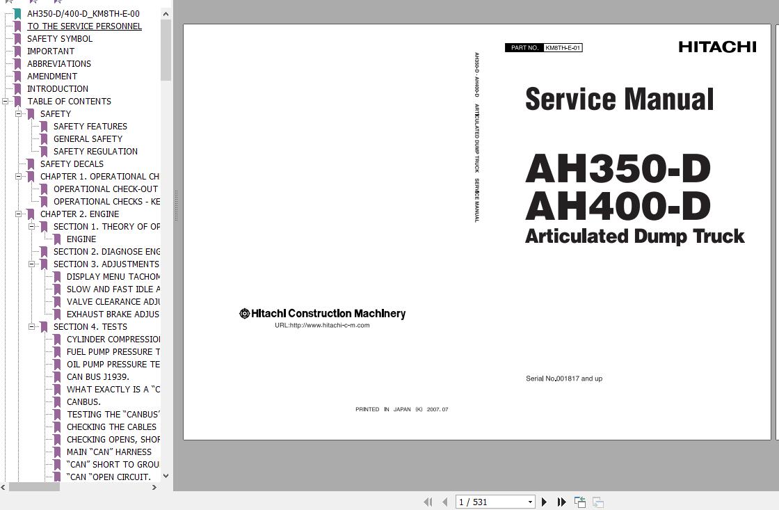 Hitachi Articulated Dump Truck AH350-D AH-400D Service Manual KM8TH-E-01